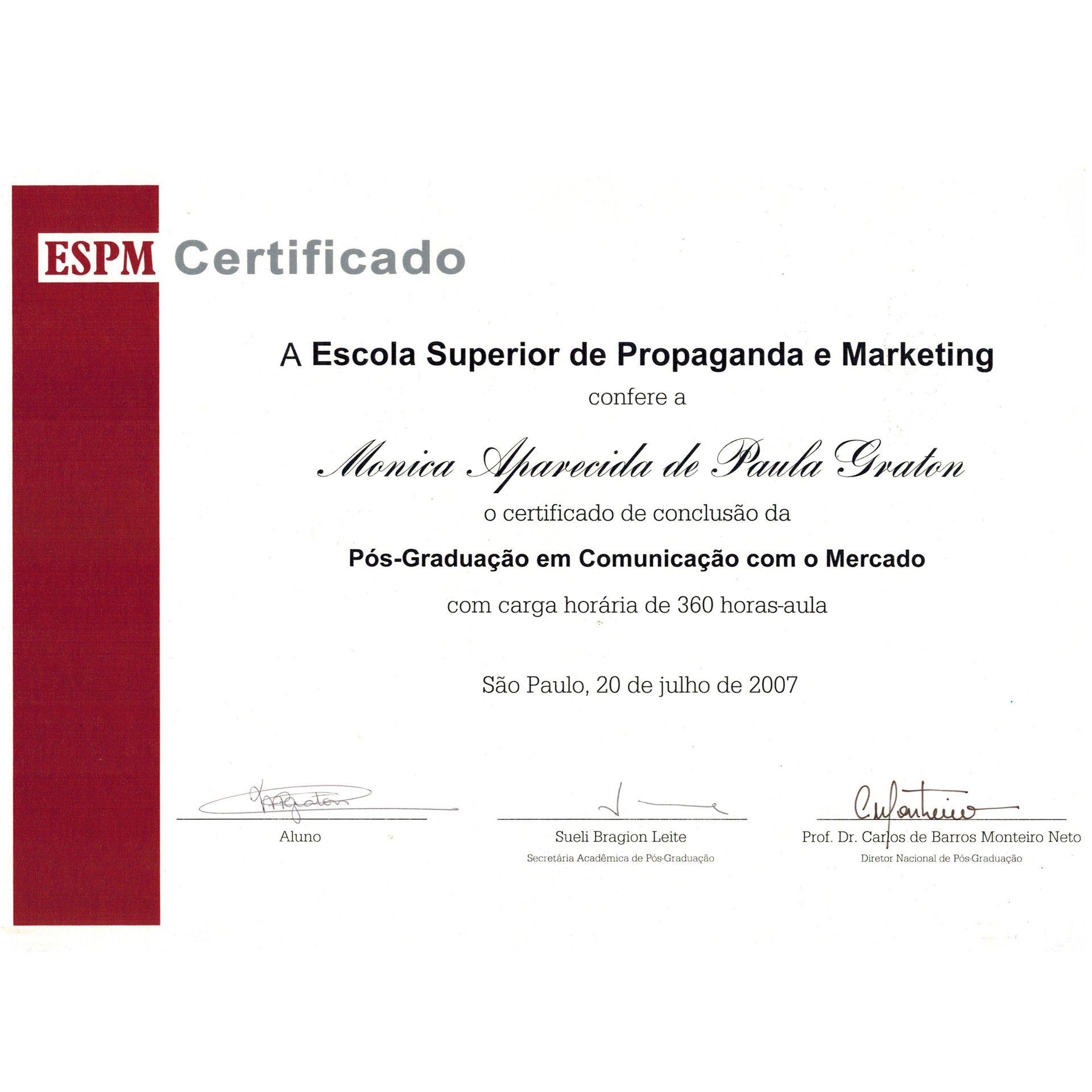 Formada em Administração com ênfase em RH (CRA Ativo), pós graduada em Comunicação com o Mercado, formada pela ESPM.